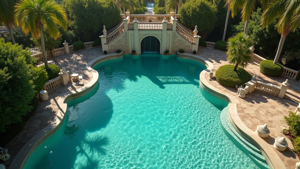 Crews also worked on sealing the pool floor with a modern, eco-friendly polymer coating, specifically ecoFINISH, which is expected to reduce water and chemical loss by approximately 40%. Other improvements encompass repairs to the pool basin, walkways, plumbing, electrical systems, and reinforcing structures around the waterfalls and grottos, all undertaken with meticulous attention to historical accuracy for this aquatic renovation project.
